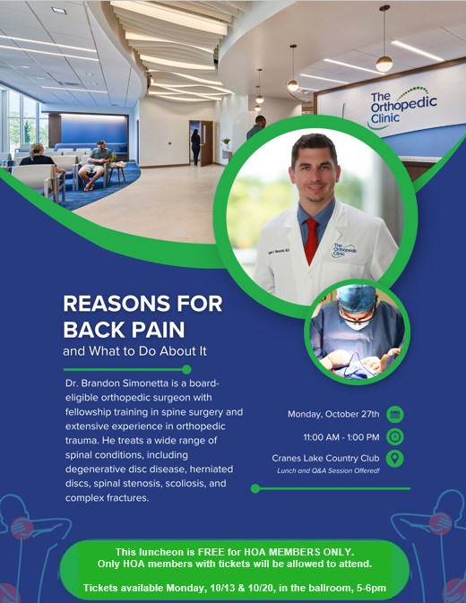 October 27, 2025 | Orthopedic Clinic Luncheon: Back Pain |